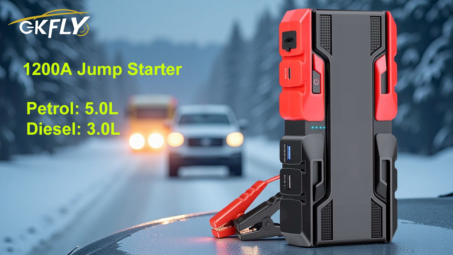 GKFLY 1200A Peak Current Car Jump Starter Power Bank 12V Car Battery Booster