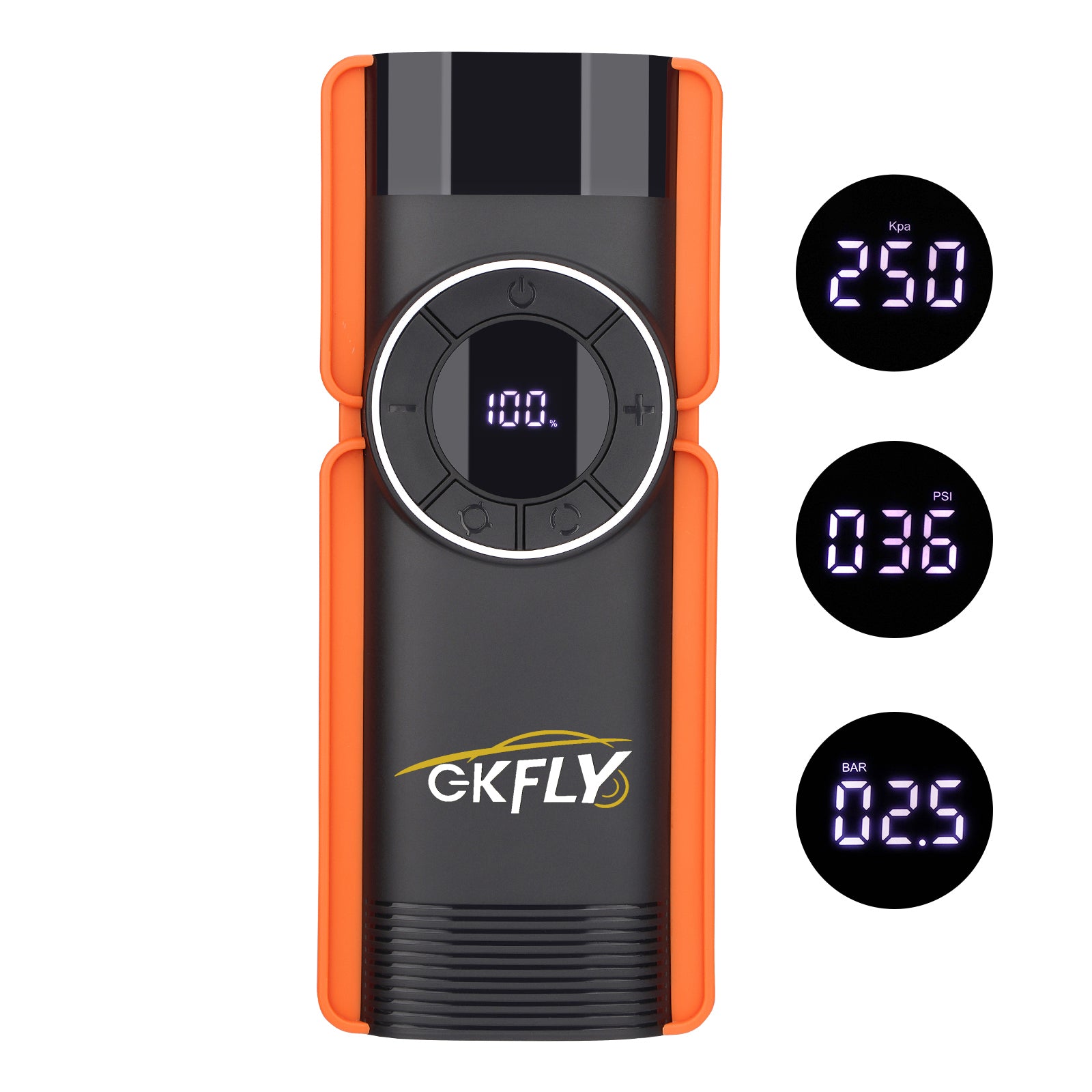 GKFLY TURBO Jump Starter 4 in 1 Pump Air Compressor 2000A Power Bank 12V Digital Tire Inflator 150PSI Emergency Battery Booster