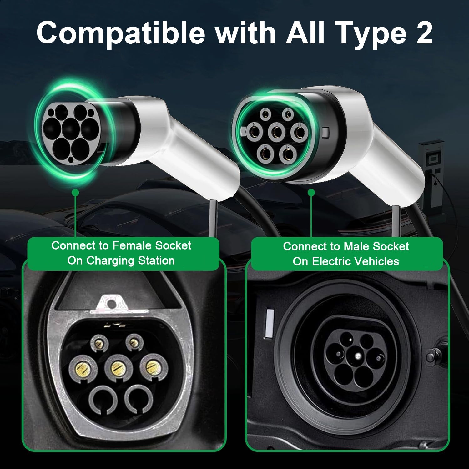 Teschev 16A/32A 11kW Type2 to Type2 EV Charging Charging Cable IEC 62196-2 Charger For Electric Vehicles PHEV Car In Public Station